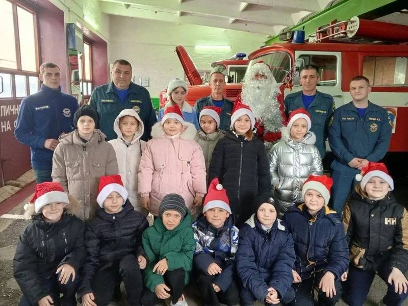 Учащиеся 3 класса СОШ №13 с Дедом Морозом и Снегурочкой посетили пожарную часть № 173 станицы Калниболотской, чтобы поздравить