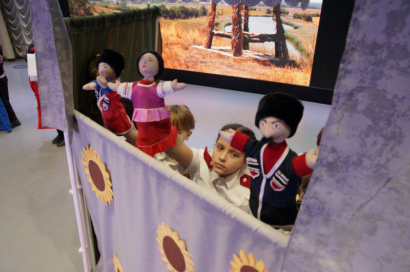 Десятки творческих ребят в национальных костюмах со всех школ района соревнуются за победу в муниципальном этапе краевого фестиваля-конкурса театрального искусства «Волшебный мир театра».