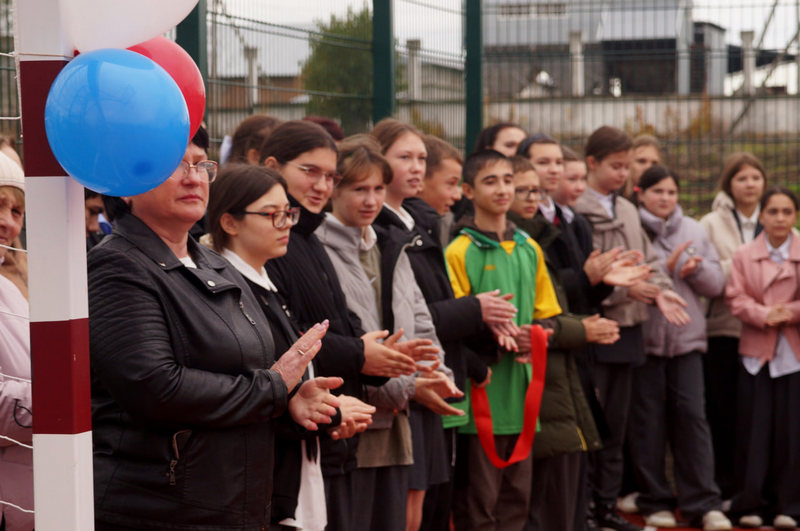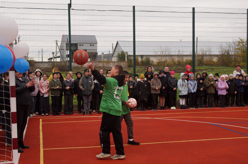 Юные футболисты и баскетболисты сразу поспешили опробовать замечательную площадку, активно забивая мячи в ворота и забрасывая в баскетбольное кольцо.