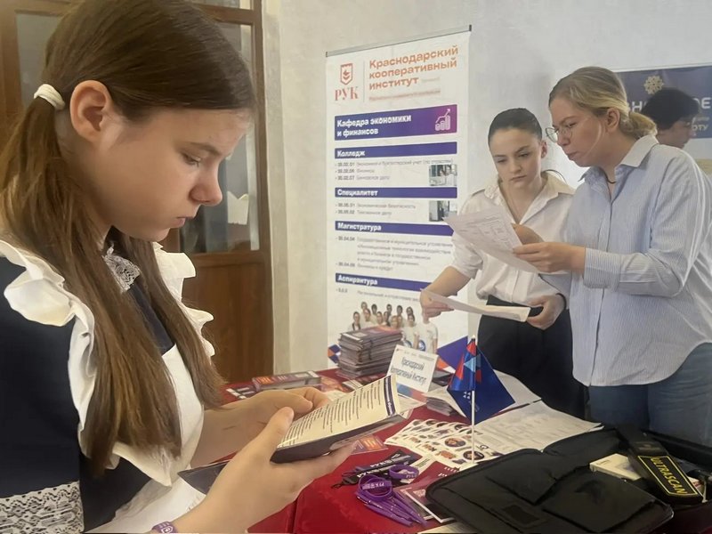 В первой половине дня в рамках мероприятия проходят выставки и презентации средних и высших учебных заведений Краснодарского края и соседних регионов. Это дает возможность старшеклассникам ознакомиться с образовательными программами и карьерными перспективами. Участниками этого блока ярмарки стали около 400 школьников района.