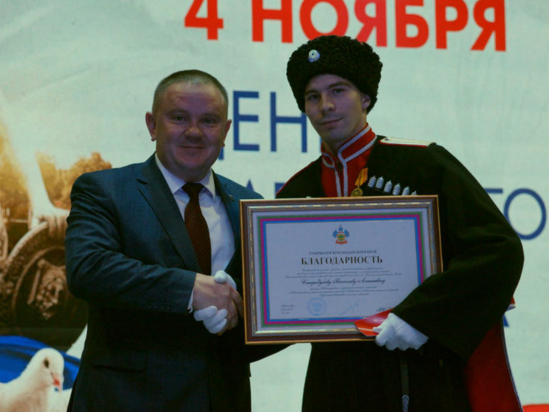 Благодарностью Губернатора Краснодарского края за образцовое исполнение служебных обязанностей, высокий профессионализм, проявленный при проведении особо значимого мероприятия – участие казачьих обществ Кубанского войскового казачьего общества в военном параде 9 мая 2025 года на Красной площади в городе Москве, медалью «За участие в военном параде и ознаменование Великой Победы в Великой Отечественной войне 1941-1945».