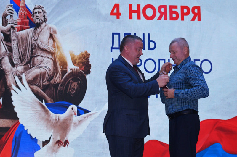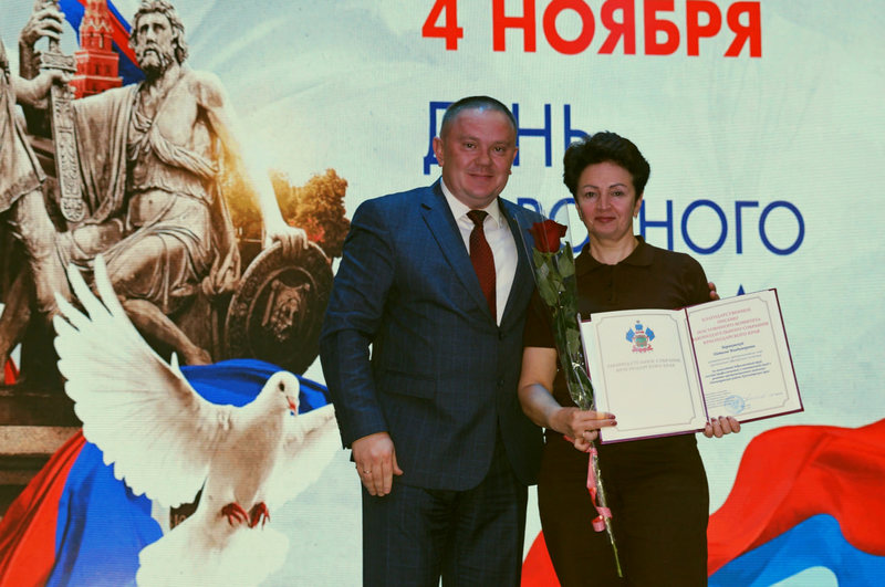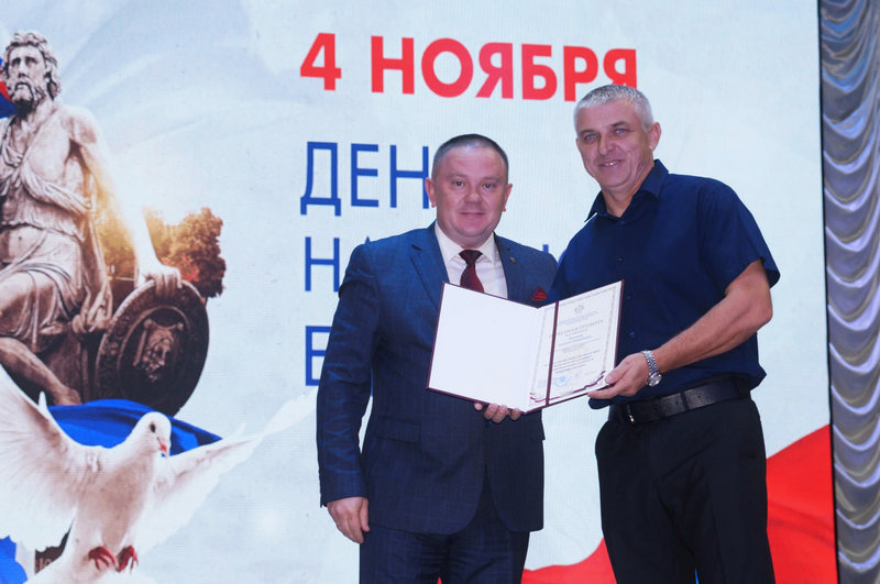 Глава МО Новопокровский район Александр Свитенко поздравил жителей и вручил награды.
