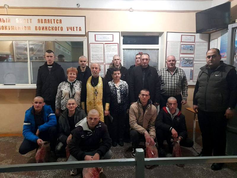 По приглашению военного комиссариата настоятель храма Пресвятой Богородицы отец Николай отслужил молебен, благословил ребят на достойную службу и вручил каждому икону и нательный крестик.