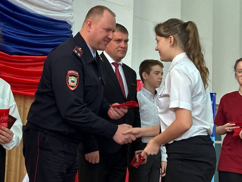 Церемония вручения паспортов прошла в торжественной обстановке. Заместитель главы района Денис Красников и заместитель начальника Отдела МВД России по Новопокровскому району, начальник полиции подполковник полиции Максим Трофимов вручили документ и обложки «Движения Первых» юным гражданам. Этот момент стал символом нового этапа в жизни молодых людей, открывающим перед ними множество возможностей.