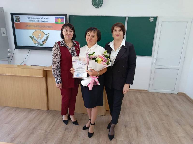 Призерами муниципального этапа краевого конкурса стали учитель начальных классов СОШ № 3 поселка Кубанского Наталья Сергеевна Шалавина, учитель физики СОШ № 9 поселка Новопокровского Александр Александрович Денисенко и учитель начальных классов СОШ № 13 станицы Калниболотской Любовь Васильевна Сивоконенко.