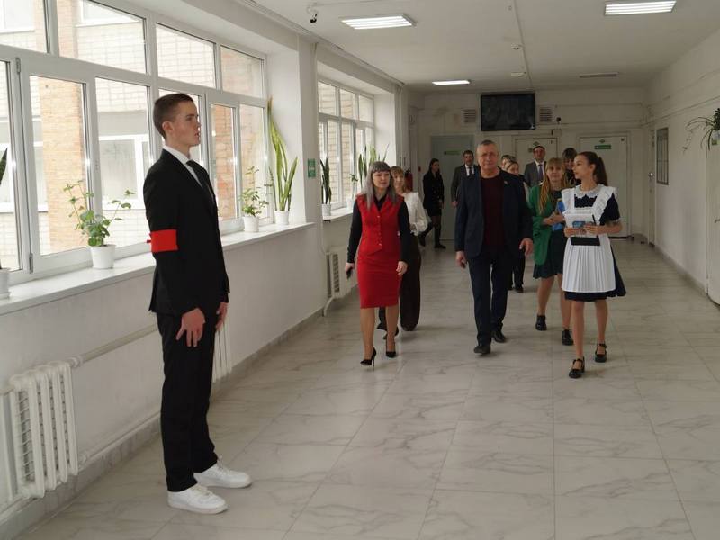 Делегацию возглавил депутат ЗСК Вячеслав Сбитнев. Экскурсию по школе для гостей провели обучающиеся 11 «А» класса.