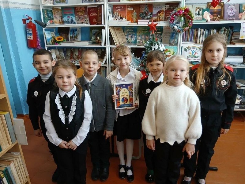 Учащиеся 1 класса СОШ № 7 поселка Малокубанского, которые на днях были посвящены в казачата в храме Рождества Пресвятой Богородицы станицы Новопокровской, стали первыми читателями книги «Детям о Христе».