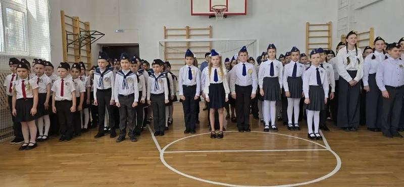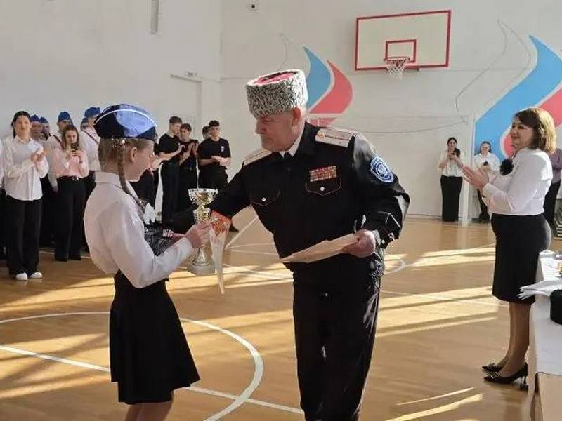 В школе №16 станицы Ильинской собрались ребята из СОШ №16 и №17 на зональный смотр строя и песни.