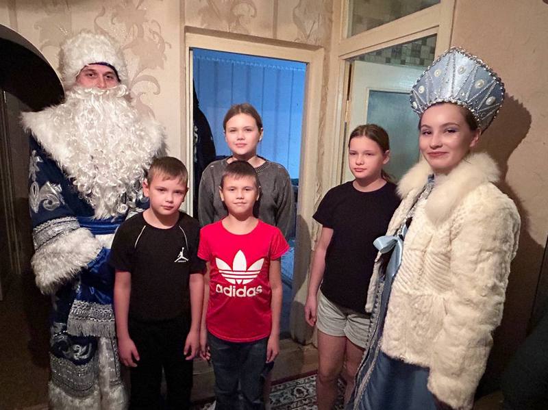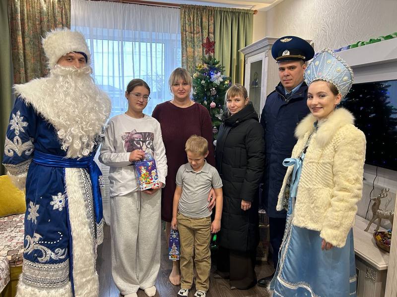 Дед Мороз и Снегурочка, вместе со старшим помощником прокурора Михаилом Давыдовым и исполняющей обязанности заместителя главы района Натальей Пашковой навестили семьи погибших военнослужащих - участников специальной военной операции.