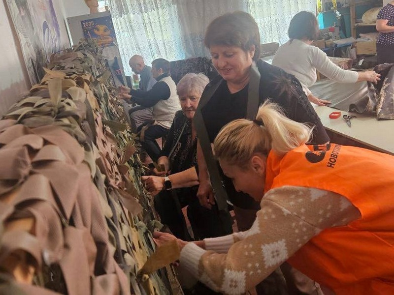 Общими усилиями серебряные волонтеры и молодежь изготовили десятки квадратных метров качественных маскировочных сетей, которые будут отправлены в зону проведения СВО.