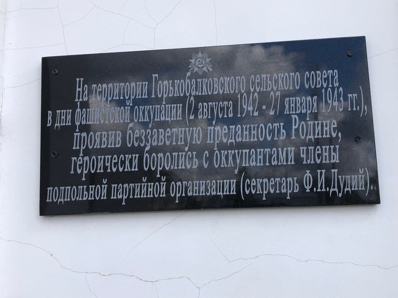 Подпольщики Горькой Балки заслужили светлой и вечной памятипотомков. Иправомерно, что по инициативе А.В.Свитенко и краеведоврайона в год 80-летия победы советского народа в Великой Отечественной войне в их честь установлена мемориальная доска на здании администрации сельского поселения.