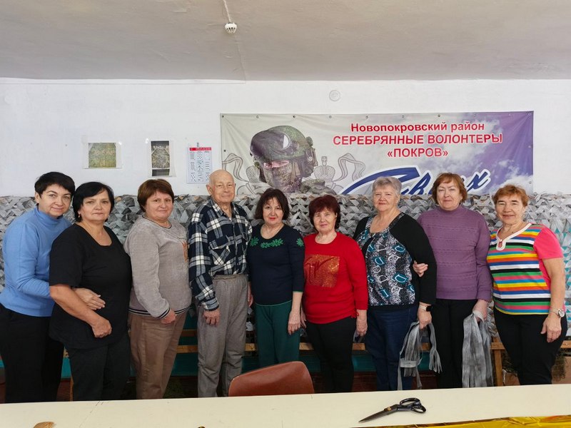 Осенью прошлого года в станице Ильинской проходил благотворительный концерт в поддержку российских военнослужащих, сражающихся в зоне СВО, и серебряные волонтеры отряда «Покров» участвовали в ярмарке-распродаже кулинарных изделий, где каждый мог приобрести выпечку и соления, приготовленные золотыми руками новопокровских умельцев. На собранные средства активисты приобрели дель – основу для маскировочных сетей.
