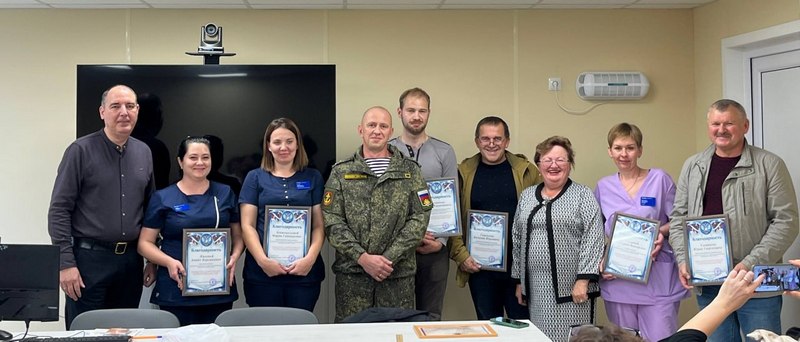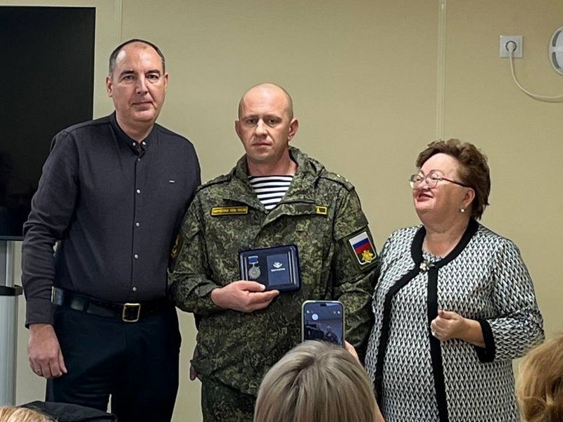 Также на мероприятии Татьяна Викторовна вручила памятную медаль Профессионального союза работников здравоохранения Российской Федерации за оказание медицинской помощи в зоне СВО «За самоотверженность и профессионализм» члену профсоюза, фельдшеру Новопокровской ЦРБ Евгению Андреевичу Марченко. «За активное участие по подготовке в работе новой поликлиники» благодарностями отмечены Ю.Г. Удовиков, В.Ю. Гаврилов, А.В. Ивлева, М.Г. Бекмеметьева, Е.В. Галкина, А.В. Головинов.